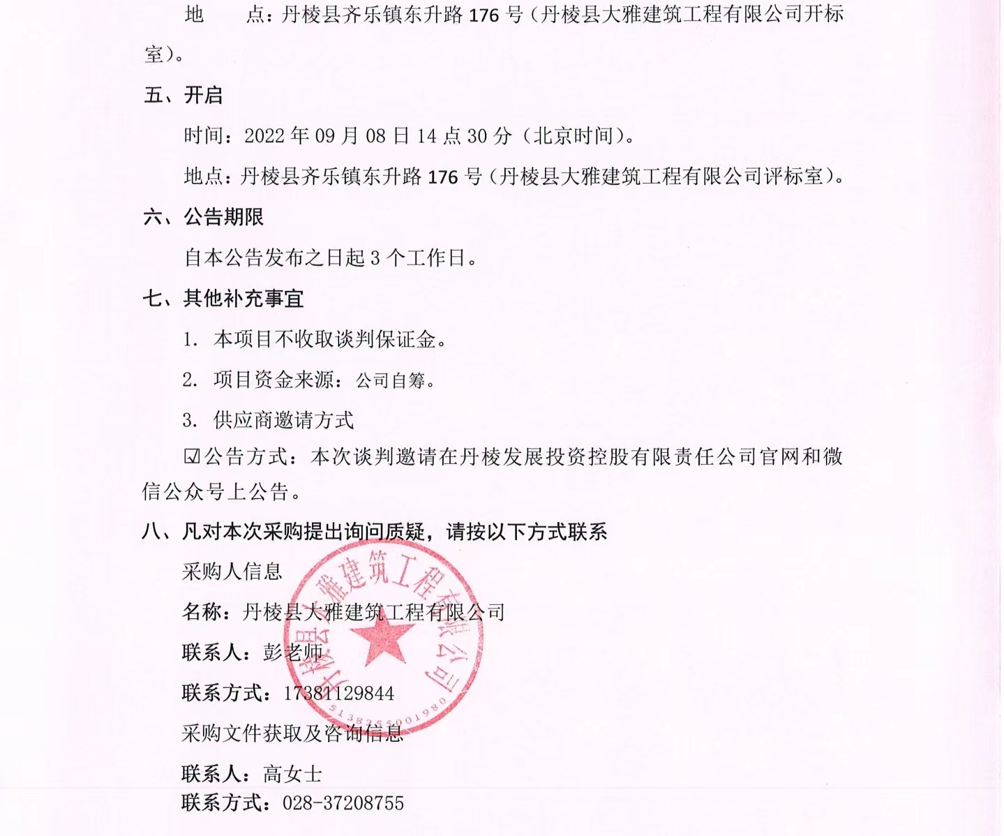 丹棱縣熊河碥片區(qū)市政基礎(chǔ)設(shè)施建設(shè)項(xiàng)目一期(城市雙修)設(shè)計(jì)施工總承包(EPC)異形構(gòu)筑物(親水亭)采購項(xiàng)目談判邀請公告