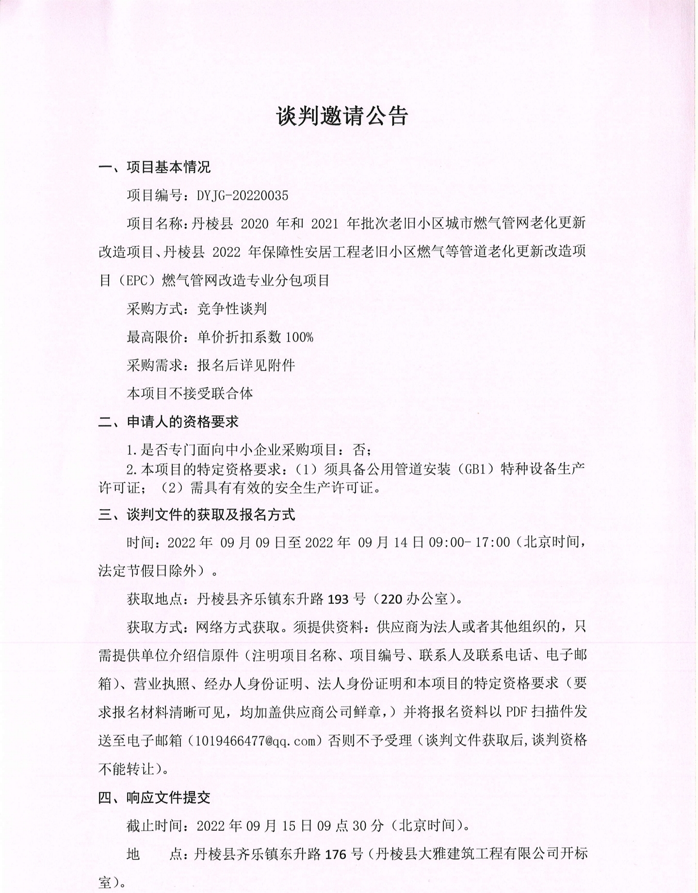 2020年和2021年批次老舊小區(qū)城市燃?xì)夤芫W(wǎng)老化造專業(yè)分包更新改造項(xiàng)目、2022年保障性安居工程老舊小區(qū)燃?xì)夤艿览匣赂脑祉?xiàng)目(EPC)燃?xì)夤芫W(wǎng)改造專業(yè)分包項(xiàng)目談判邀請(qǐng)公告