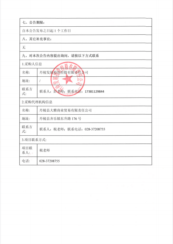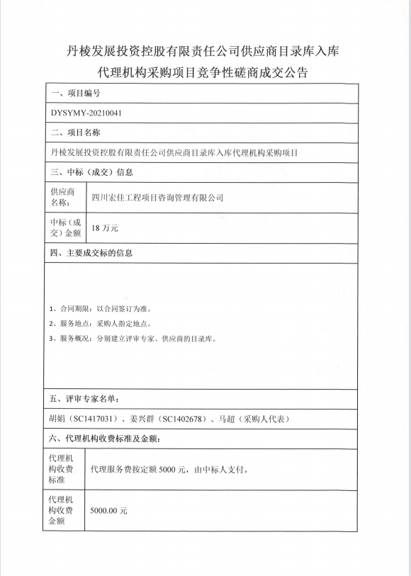 【丹發(fā)展公司】丹棱發(fā)展投資控股有限責(zé)任公司供應(yīng)商目錄庫入庫代理機(jī)構(gòu)采購項(xiàng)目競爭性磋商成交公告