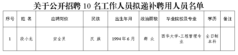 附件:關(guān)于公開招聘10名工作人員擬遞補(bǔ)聘用人員名單