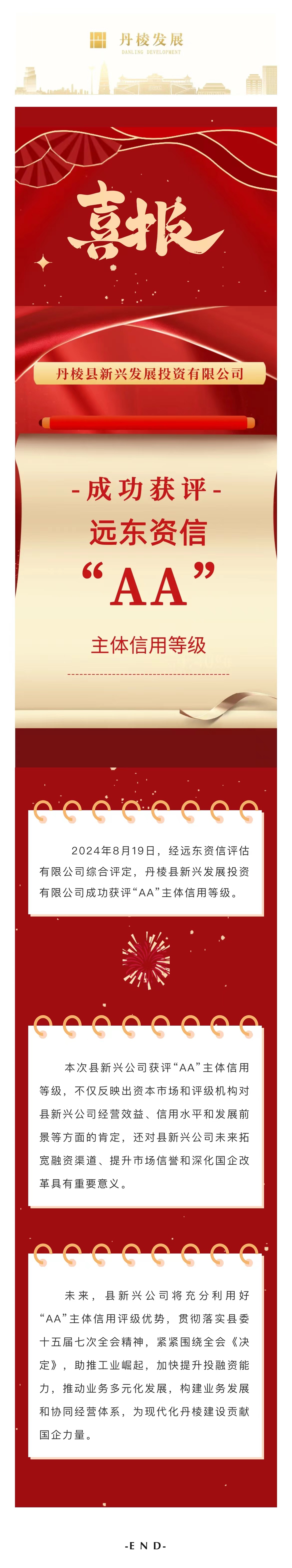 喜報!縣新興公司成功獲評“AA”主體信用評級