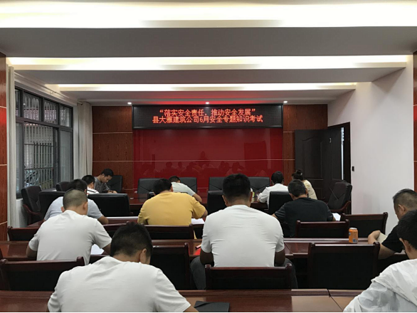 為進一步強化安全生產(chǎn)管理舉措,提高安全生產(chǎn)管理水平,杜絕建設(shè)工程安全事故的發(fā)生,7月6日,縣大雅建筑公司開展第二次安全專題知識月度考試,進一步將安全生產(chǎn)工作落到實處,推進安全知識考試常態(tài)化。