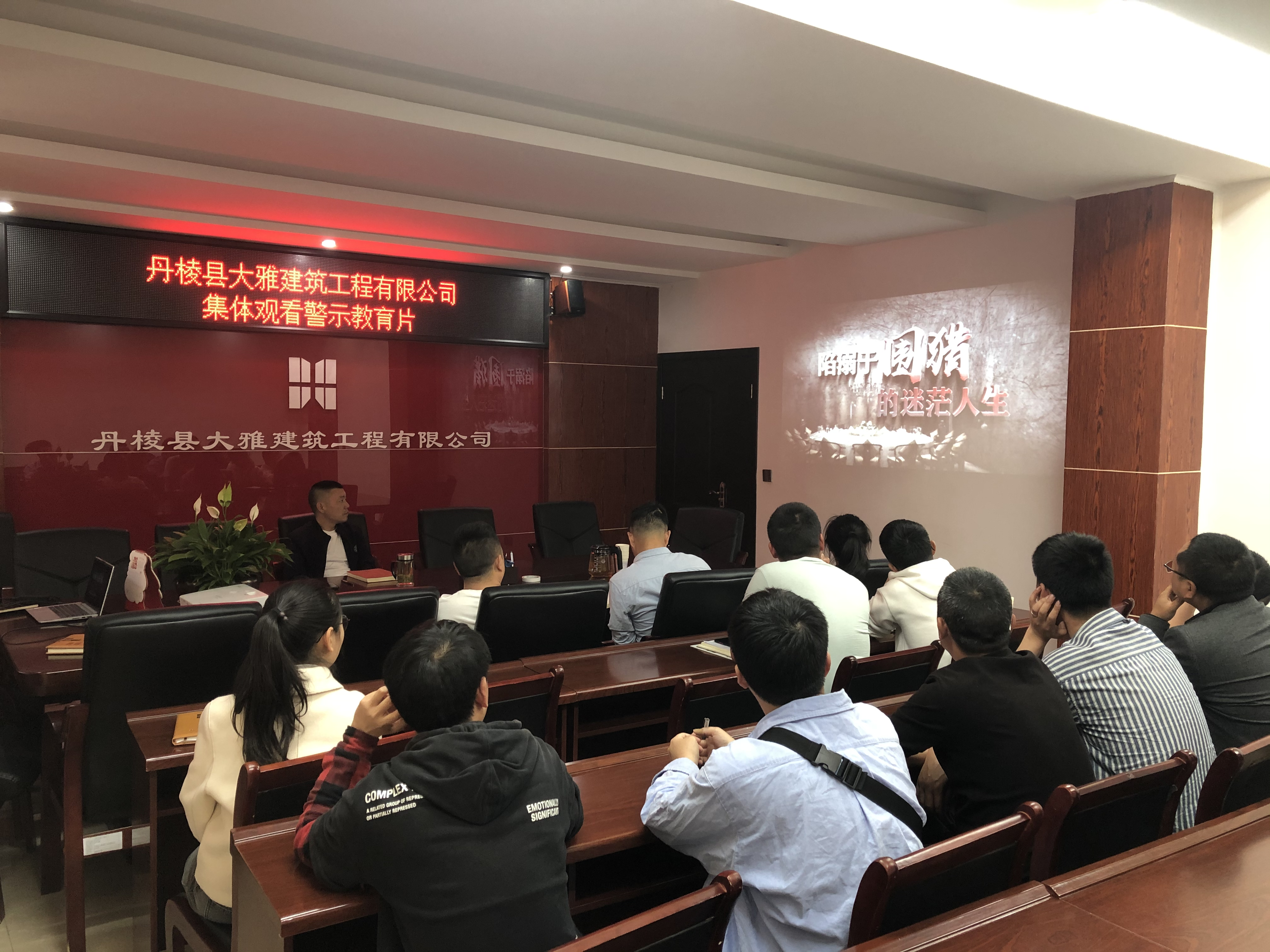 為進一步加強黨風廉政建設,增強黨員干部廉潔自律意識,筑牢思想防線,根據(jù)縣國資金融局紀檢組相關要求,近日,大雅建筑公司組織全體黨員和干部職工集中觀看警示教育片《砂蝕人生》與《陷溺》。