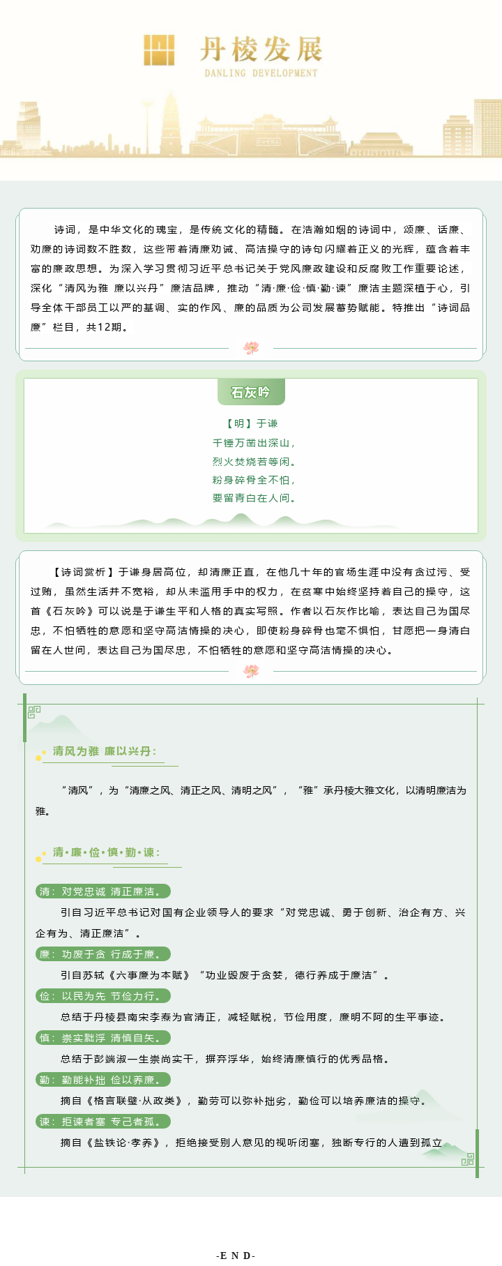 【詩(shī)詞品廉】第3期 于謙•《石灰吟》